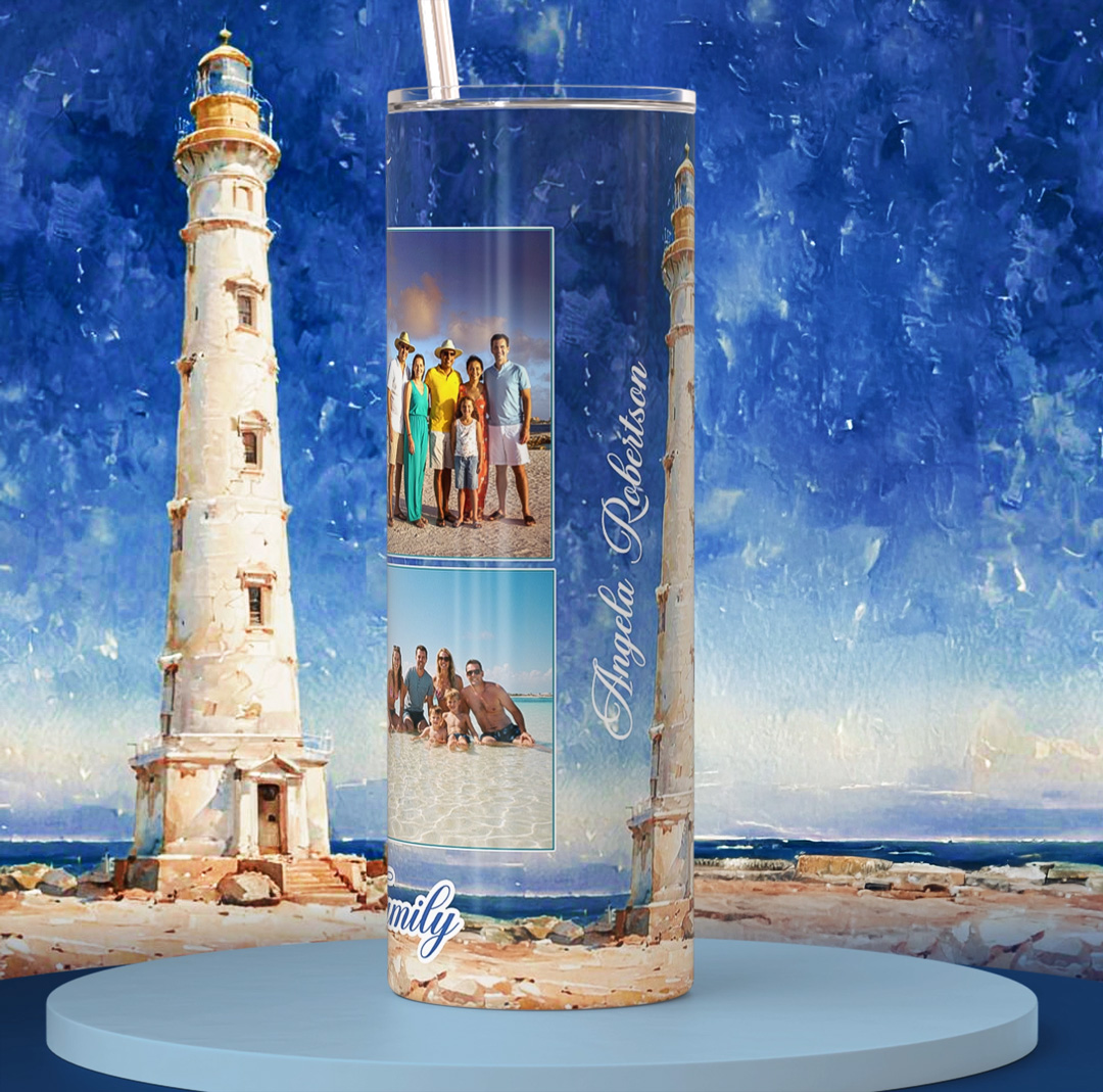Beautiful Tumbler with oil paint depiction of Aruba’s famous lighthouse, add up to 8 photos